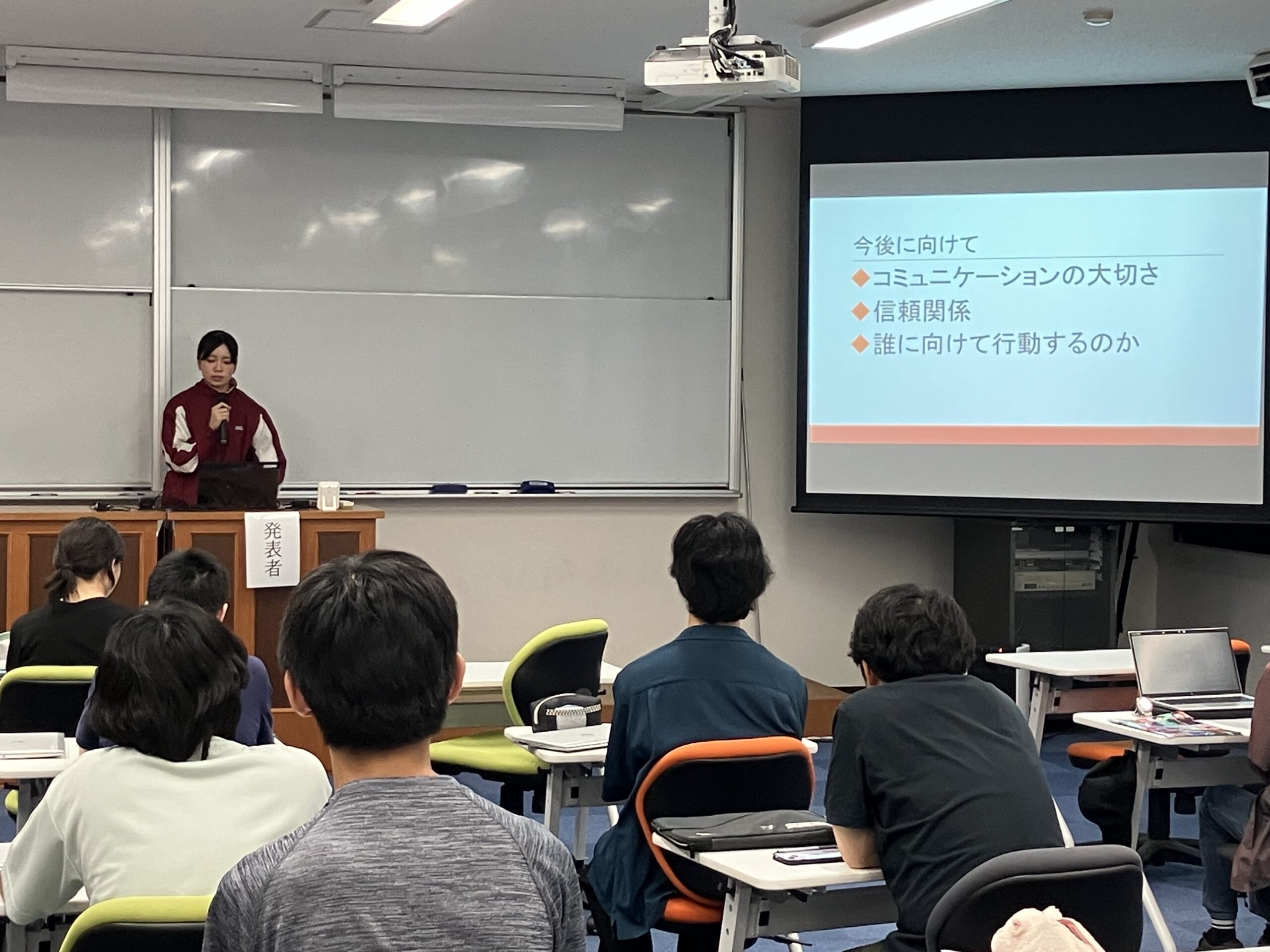 2025.10.03イベント インターンシップ報告会を行いました。 2025(令和7)年10月2日(木)午後1時00分より、インターンシップ報告会を行いました。 本学では、長期休暇中の2週間、授業の一環として、各企業様のご協力をいただき、インターンシップを行っております。 本年度の1年生も、11社の企業様にて就業体験をさせていただき、自分の将来を見据える良い機会になりました。
